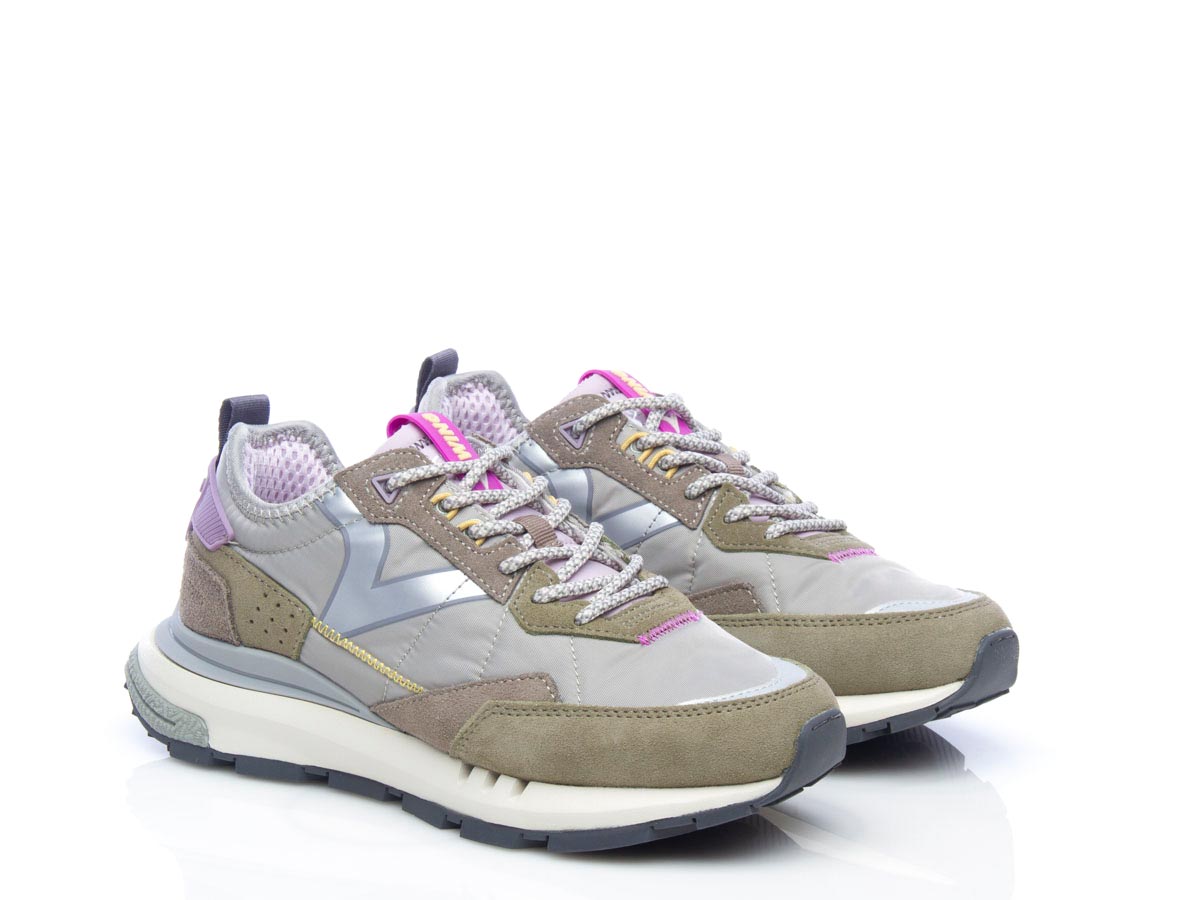 Sneaker da donna in nylon e inserti in crosta.